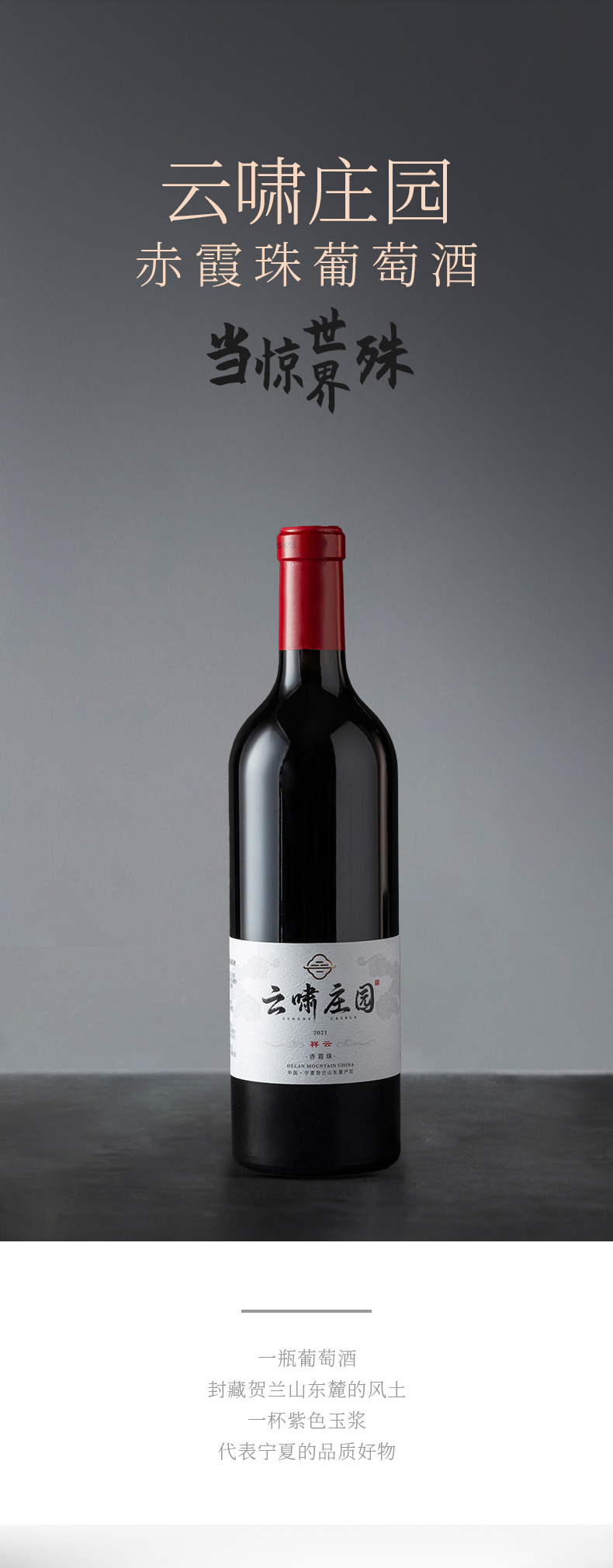 品名:云嘯莊園干紅葡萄酒原酒產地:寧夏賀蘭山東麓產區