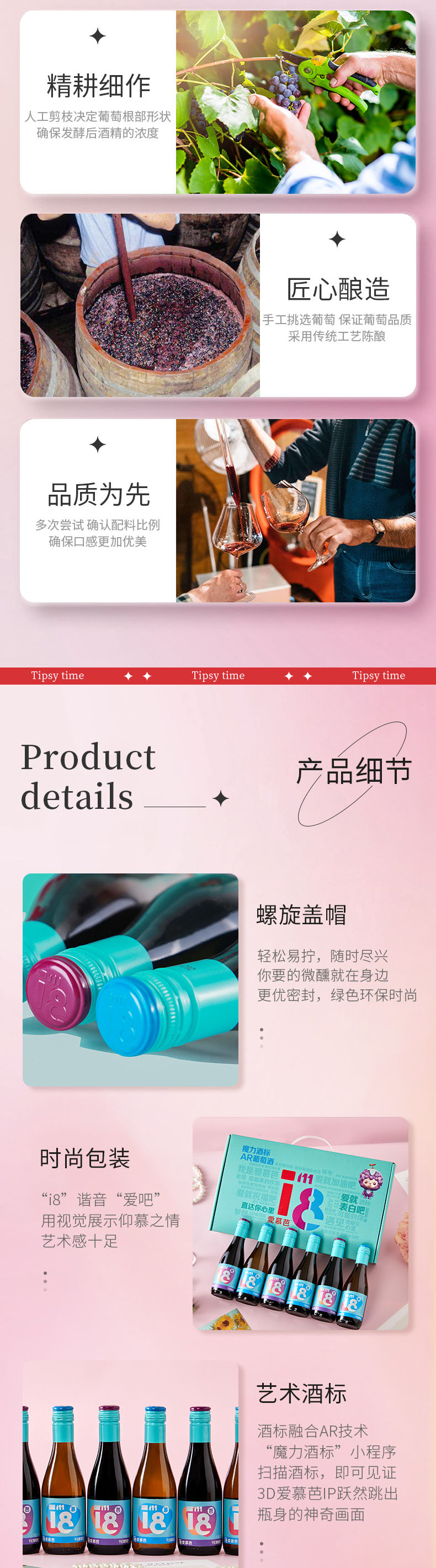 種類:桃紅葡萄酒、干白葡萄酒、干紅葡萄酒